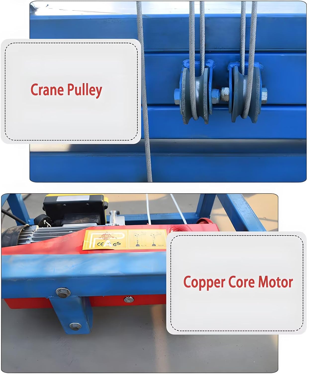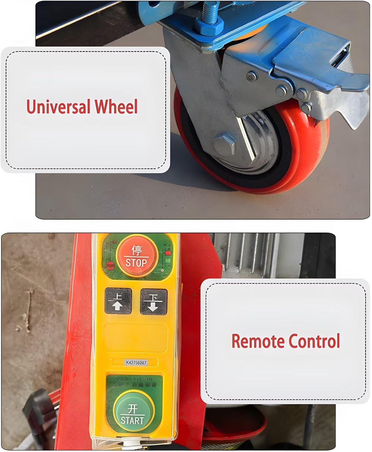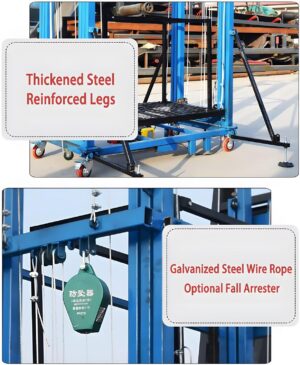 - 【GALVANIZED STEEL WIRE ROPE】The electric scaffolding lifter adopts high-power copper core motors and thickened galvanized steel wire ropes, which are safe and stable, and the lifting is smooth. Heavy anti-fall devices are equipped above 4 meters to ensure safety