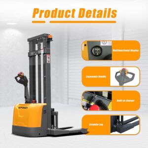 APOLLOLIFT Electric Walkie Stacker, 3300 lbs Capacity 130“ Lift Height Powered Drive and Lift Electric Stacker, with Straddle Legs Adjustable Forks Material Lift