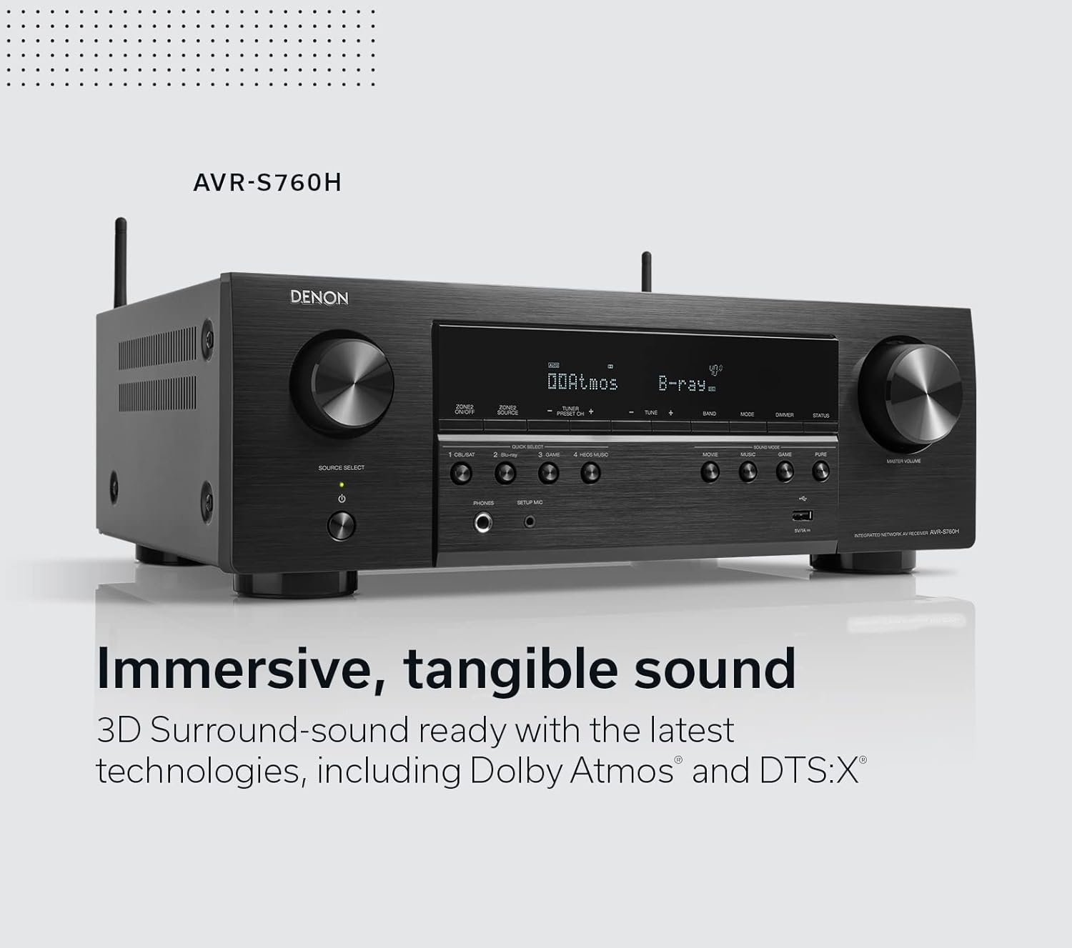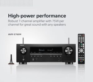 Denon AVR-S760H 7.2 Ch AVR – 75 W/Ch (2021 Model), Advanced 8K Upscaling, Dolby Atmos Height Virtualization, DTS Virtual:X & More, Built-in HEOS, Amazon Alexa Voice Control
