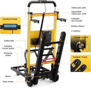 Electric Stair Climbing Hand Trucks Moving Heavy Objects Up and Down Stairs Effortless, 441 lbs Max Load Capacity, Folding Stair Climbing Dolly with Rubber Tracks for Easy Moving of Heavy Furniture