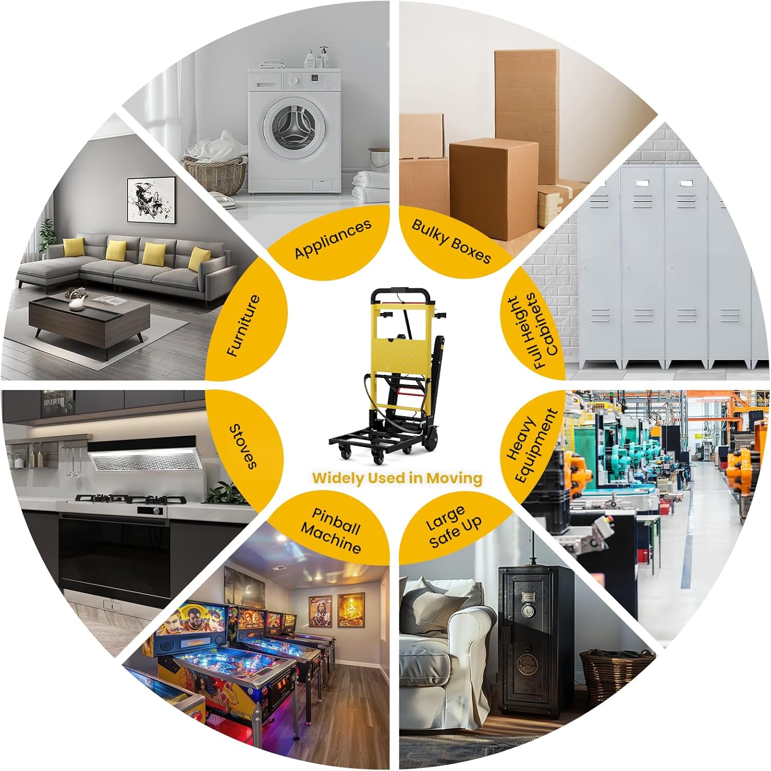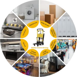Effortless Stair Climbing: Our stair climbing hand truck is designed to make moving heavy objects up and down stairs a breeze. With its unique track structure and anti-slip crawler, It is suitable for straight stairs of less than 30 degrees and provides stability and safety